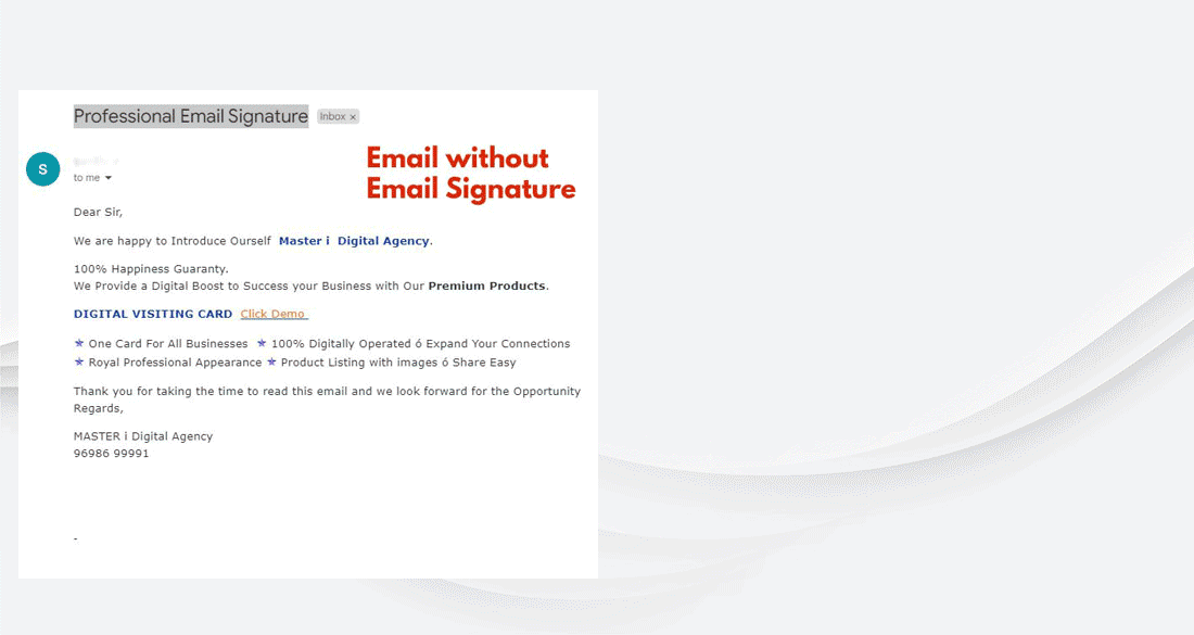 Strong email signature is eye-catching and professional That Show off Your Business Brand. Through email signature you get the opportunity to promote your product thus increasing your brand awareness.